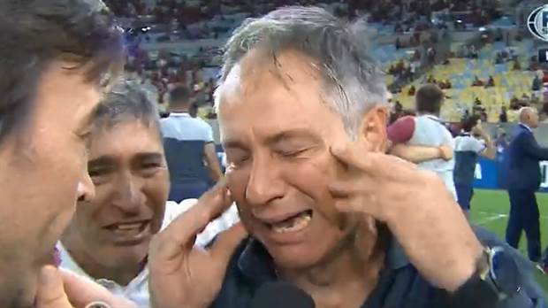 Era tan grande la emoción que luego de haber llevado a su club a la gloria, el DT que llegó al Rojo mirado con recelo por su poca experiencia en los bancos de suplentes, dijo "No puedo hablar, me acuerdo de mi papá. Mirá lo que es esto. Es muy fuerte. Es un sueño, no me quiero despertar. Conseguirlo en esta cancha, en este estadio mítico. Independiente es mi club, lo amo con toda mi alma" y agregó "En este estadio mítico, uno de los más grandes de la historia, Independiente logró ganar un título acá por tercera vez en la historia...". Y justificó la celebración a partir de su tropa. "Porque tuvo fútbol, porque tuvo valentía. Tengo 28 leones, estoy orgulloso de ser su entrenador"
